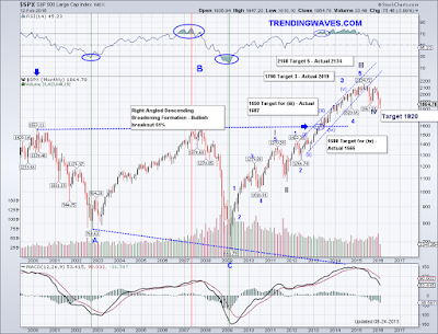As stated yesterday "There was a substantial bounce from the 1810 low today that could evolve into a full rally as long as 1810 doesn't get breached". The market has followed through on its counter-rally and the big test will be the 1881 level. If the rally gets past this resistance level, the most bearish scenario will be eliminated and will open the doors to a more sustainable rally. The question then be if the the LT W5 has started. I haven't updated the Long Term chart (same count for the last 5 years) since August last year and the labels posted on them were from then as I have no touched it since. Notice based on my calculation the price and time for LT W4 and where the market is today. I'll let the chart speak for itself.