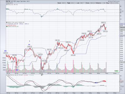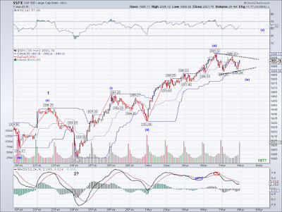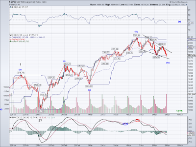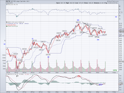 The W4 remains a possibility but it will start looking suspect if we don't see a rally tomorrow. Considering recent advances in oil and the aggressive QE the EU is implementing, I'm surprised the market didn't gain traction today. So failure to complete the 5 wave count will lead to a bigger correction, perhaps to the 1931 level.