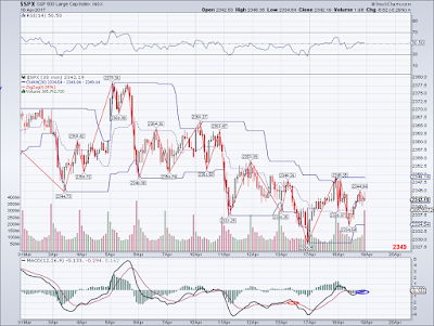 The market went into a minor correction today but its too early to tell if there will be another challenge to resistance. The bottoming pattern looks like it could hold but with the French elections this weekend and other geo-political issues, the market could find an excuse to revisit the 2322 low again. The one thing that could be a positive and one which I am paying close attention to, is the tax cuts proposal next week by Trump. I hope he cuts taxes at the higher end as this will incentivize the economy. I live in a state where basically 50% of my income (in Federal and State taxes combined) above a certain level goes to the government. And what incentive do I have as an entrepreneur to work more when the government takes an equal or higher share of my earnings? it's ridiculous and highly damaging to a free market economy. If they want more money, they should focus on being more efficient first before asking working people for half their income.