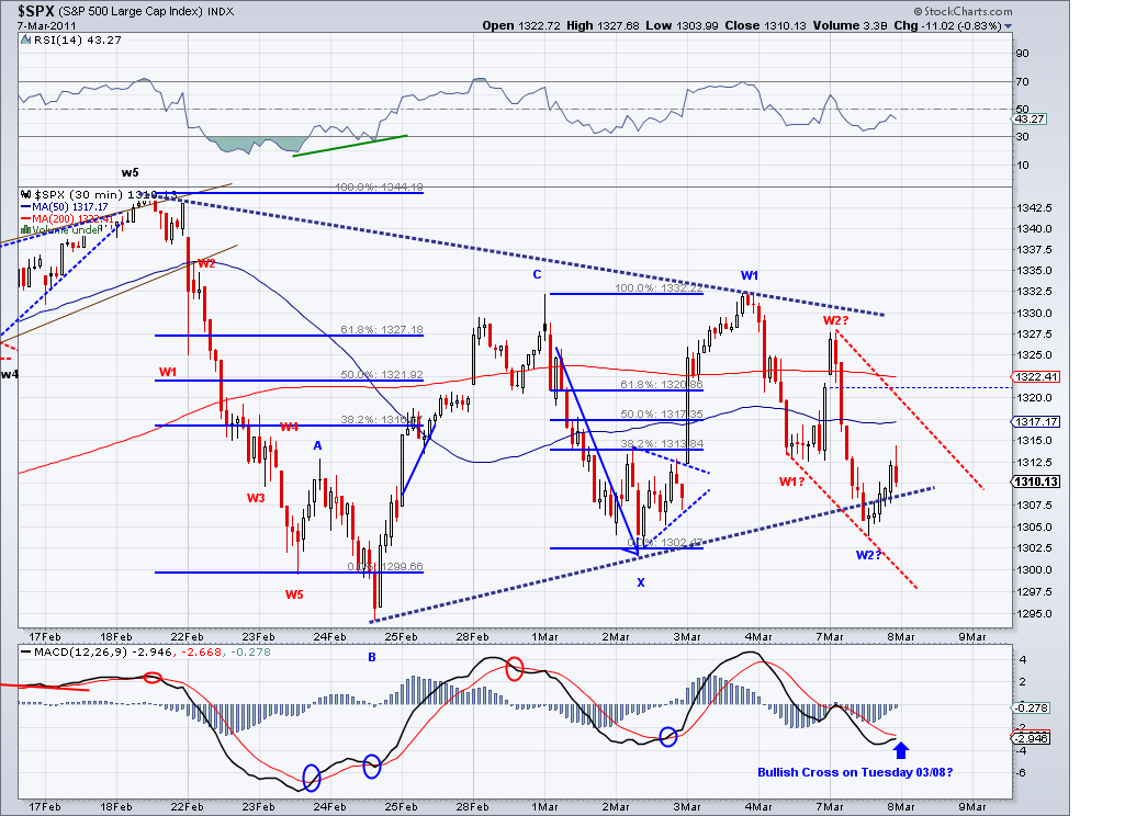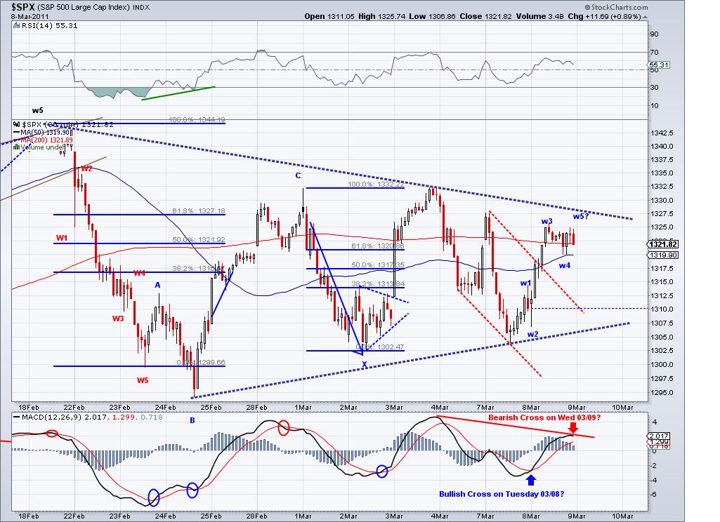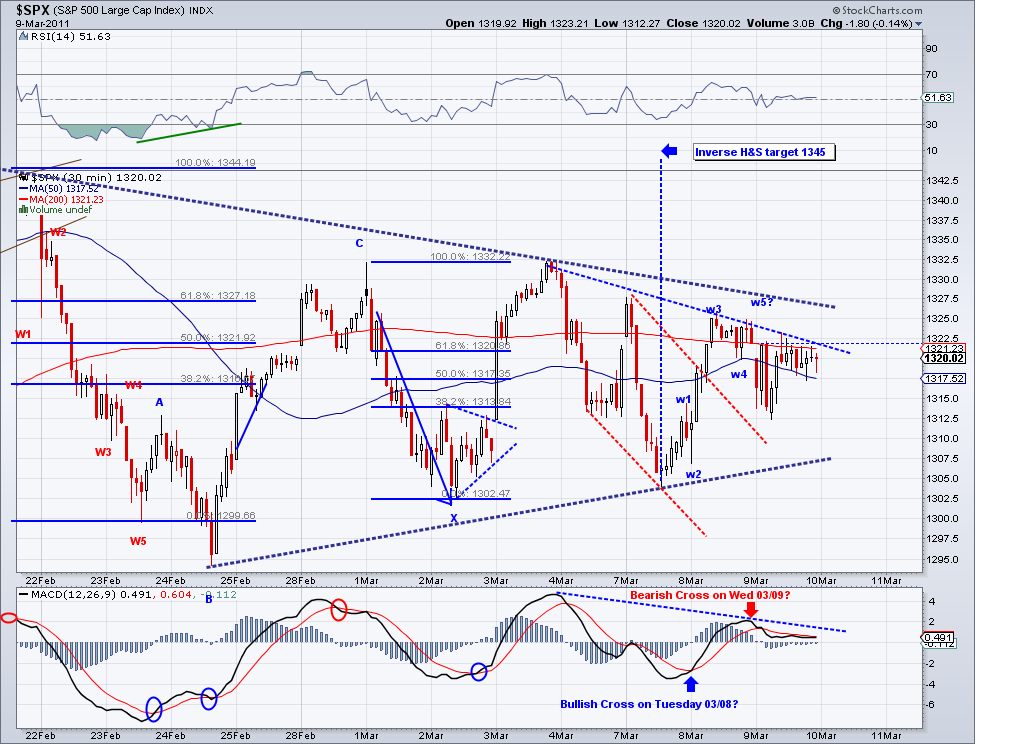 I suspected the high for the rally could be put in after hours so I took a short position at 1308 to hedge. And of course, we might see 1315 or even 1319 in the cash market before reversing but I think we're close enough for the market to start correcting (or selling off).