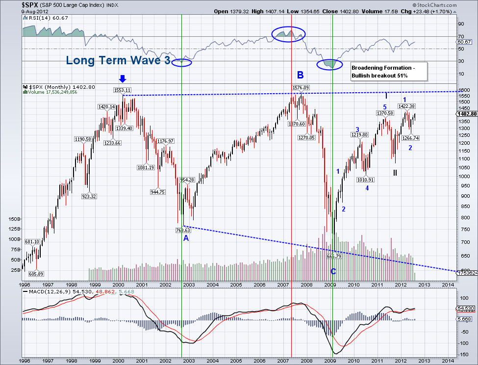 I also had the chance to chart the long term count for the market and here is the most bullish option. The market is obviously in a broadening formation pattern and the interesting thing about this particular set up is that it has a 50/50 chance of breaking out. Gold was in this pattern few months ago before it exploded but obviously, this is just for entertainment purposes because I would never trade or invest based on a long term wave count. But as long as the trends remain up, this is a chart to consider as a guide. Also, after 12 years of a sideways correction which has left a clear ABC move, I wouldn't be surprised to see the resumption of a strong bull market. And I'll post the bearish long term alternatives when the trends turn south. But for now, this is the one to watch. I know the most popular wave counts are the bearish ones but they all have proven disastrous to many traders so we'll try making money here for a change :)