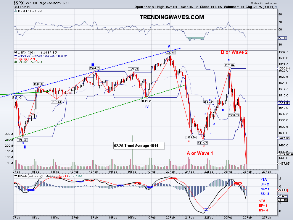 - Bought 2000 VXX @22.38 on 02/12/13 - Stopped out @22.38 on 02/14. Bought back @22.05 on 02/15/13 - Sold all 2800 VXX on 02/25/13 @ 24.30 = +2.05