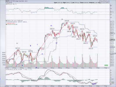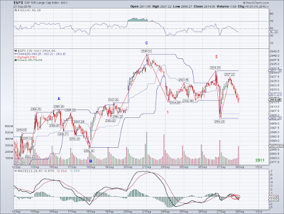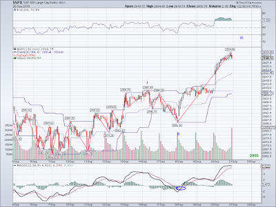 Prices bounced today from yesterday's bearish close but a lower high was made and the pattern could evolve into a sell-off in the next session or two. If prices are able to rise above 2931 then the bearish pattern will be challenged.