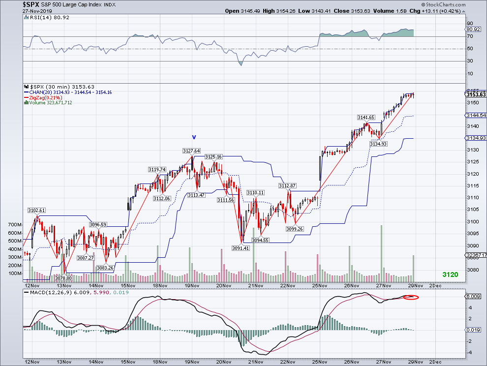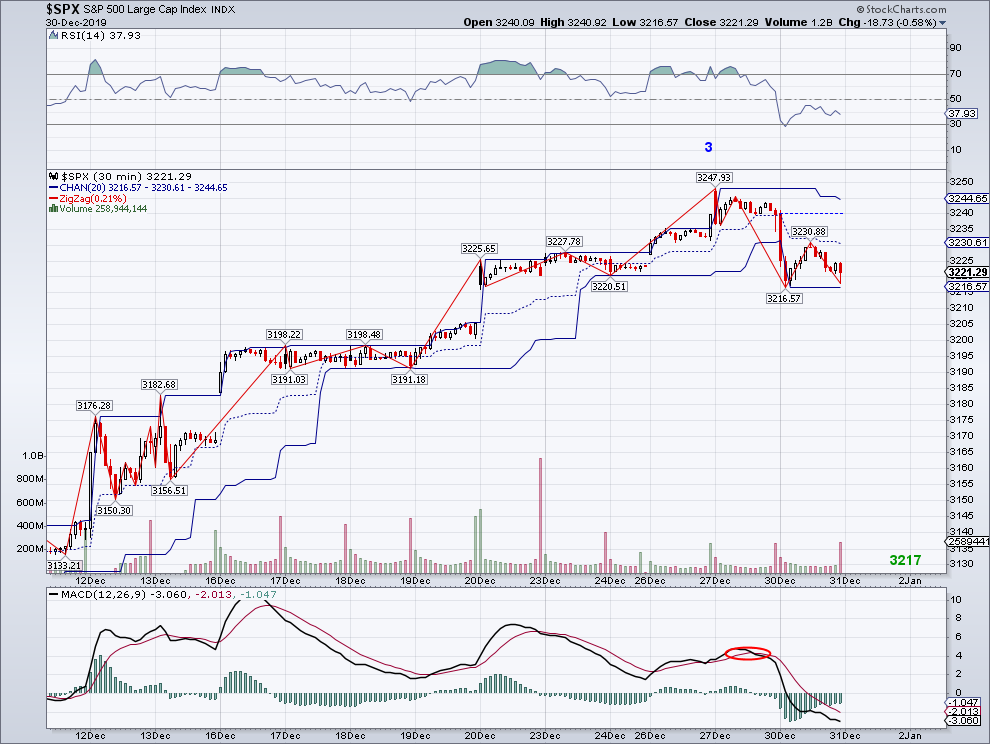 The market finally took a break in what seems like a possible W4 of a 5 wave count still in play. We could continue to see more downside tomorrow for this correction but ideally, we would see a last bullish wave materialize and close the year at an all-time high. Which I don't ever remember seeing.